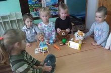 Педагог младшей гуппы №2 Синякова Е.Е. продолжает развивать у детей воображение,фантазию, учит соотносить данные формы овала, круга с частями игрушек зверей и птиц.