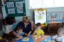 Малыши из второй группы раннего возраста "Смешарики" осваивали нетрадиционную технику рисования - рисование ватными палочками. В этой технике изобразили лучики для солнышка.