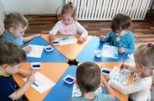 Педагого Синякова Е.Е. продолжает учить детей второй группы раннего возраста №1 правильно держать кисть, набирать краску на ворс; рисовать округлые предметы. Малыши развивают умение аккуратнозакрашивать круг, проводя кисточкой штрихи в одном направлении, без просветов.
