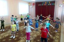 Воспитанники младшей группы на утренней гимнастике.
