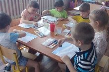В рамках тематической недели "Весенние приметы" воспитанники старшей группы с воспитателем Веретенниковой С.А. учились изображать весеннее небо способом цветовой растяжки "по мокрому". Педагог создал условия для свободного эксперементирования с акварельными красками и разными художественными материалами.