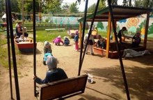 У песочницы присели,