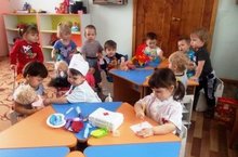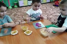 В младшем возрасте ведется большая работа по развитию мелкой моторики. Педагог Гадеева Л. Т. вводит в режимные моменты короткие занятия по аппликации с нетрадиционным материалом. Используются резаные нитки, крупы, макаронные изделия, скрученные салфетки и др. Все виды деятельности по развитию мелкой моторики привлекают детей. Их интригует мотивация задания, интересует процесс работы и радует результат.