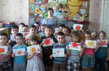 Подгорная И.Г. вызвала у детей желание создать образ солнышка по мотивам декоративно – прикладного искусства; обратила внимание на декоративные элементы, объяснила символику; развивать изображение. Занятие способствовало воспитанию интереса к народному искусству и использование в узоре разнообразные прямые, округлые линии формы, растительные элементы.