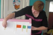 Подгорная И.Г. научила детей вырезать основные части силуэта яхты, преобразовывая прямоугольник в два треугольника и срезая угол. Научила передавать образ моря путем отрывания от листа цветной бумаги кусочков среднего размера, нанесения на них клея и наклеивания в определенном месте. Способствовала воспитанию самостоятельности, аккуратности при работе с клеем.