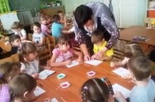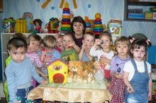 Малыши группы "Солнышко" и педагог Гадеева Л.Т. лепили миски для медведей: учились скатывать из пластилина шары круговыми движениями рук, сплющивать комок в ладонях.