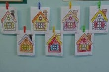 Жить зверята будут в нем.Педагог Мубаракшина Н.Ф. продолжает вызывать у детей интерес к рисованию и познакомила с приёмом украшения изображений домов мазками, точками, кругами.