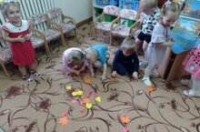 Лепка во второй группе раннего возраста "Падают, падают листья". Обучать детей создавать рельефное изображение из пластилина - отщипывать кусочки желтого, красного, оранжевого цвета, прижимать пальчиками. Укреплять пальца и кисти рук.