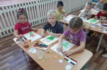 В рамках тематической недели"Осення пора" в ходе образовательной деятельности воспитанники подготовительной группы №2 с воспитателем Вафиной Н. А. лепили "Осень на опушке леса".