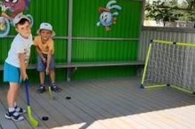 Воспитанники средней группы "Смешарики" под руководством воспитателя Веретениковой С.А. осваивают элементы игры в хоккей. Обучаются правильно держать клюшку, выполнять ведение шайбы клюшкой разными способами; удары по шайбе клюшкой в цель; передачу шайбы клюшкой партнеру.