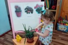 На очередной тематической неделе "Планета Земля", воспитатель Золотова Л.А. Провела занятие по ознакомлению с окружающим на тему "Цветы на подоконнике". Цель: познакомить детей с комнатными растениями. Развивать желание ухаживать за ними, относиться к растениям с любовью и нежностью. Обучать детей сравнивать растения, находить сходства и различия во внешних признаках.