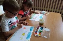 Дети подготовительной группы познакомились с новой нетрадиционной техникой рисования - цветной граттаж. Используя прием процарапывания, рисовали звездное небо.