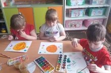 Дети передавали образ солнышка пластических способом, используя приём разглаживания. Закрепляли умение раскатывать пластилин прямыми движениями.