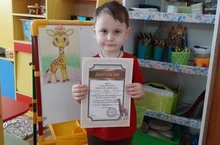 Награждается воспитанник средней группы "Смешарики" Роман Б. 1 место за победу в (заочном) Всероссийском конкурсе рисунков "Оранжевый жираф" в номинации: "Лучший рисунок жирафа" название работы: "Забавный жираф". Руководитель: Веретенникова С.А.