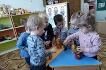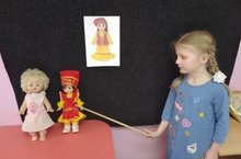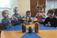 Малыши группы раннего возраста познакомились с народной игрушкой - матрешкой. Совместно с воспитателем Гадеевой Л.Т. в ходе ОД играли в различные игры: рассматривали игрушку, описывая яркость, цвет, размер; угощали; разбирали и собирали матрешек; плясали с ними. -