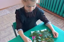 Дети создали из природных материалов интересную композицию.