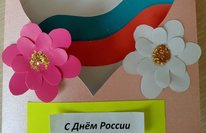 Ученица 3 класса МБОУ "Краснобаранская ООШ" Анисимова Э. своими руками сделала открытку и поздравила соседей с Днём России.