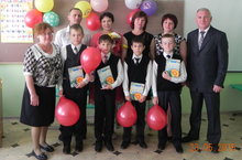 Балачагым җырларын,- дип саубуллаштылар беренче укытучылары Никшова Варвара Сергеевна белән 4 нче сыйныф укучылары Баранов Евгений, Баранова Елизавета, Захаров Николай, Сергеев Николай һәм Скворцов Евгений.