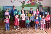 Маленькие дети были рады школьникам. Учащиеся с удовольствием водили хоровод с ребятишками и подарили им воздушные шарики с шоколадками.