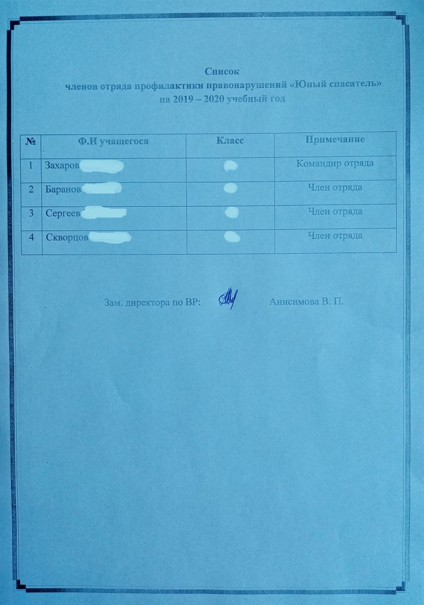 Список отряда ПП Юный спасатель на 2019-2020 уч. год