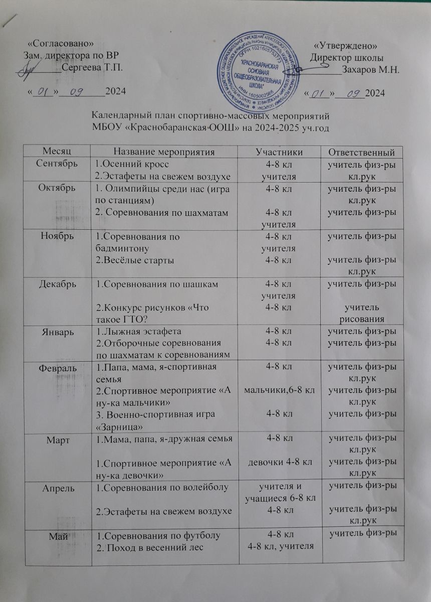 Календарный план мероприятий на 2024-2025 учебный год
