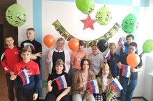 Педагоги с девочками оформили поздравительную зону поздравили своих одноклассников с наступающим праздником 23 февраля.