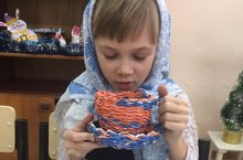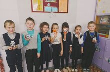 На кружке английского языка ребята рассказывали о своих домашних питомцах, а в конце занятия выполнили объёмную поделку из бумаги - кошечку.
