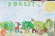 Сегодня на кружке английского языка ребята изучали лексику, которая связана с природой - лесом и лесными животными. В конце занятия ребята составили коллаж из рисунков "Forest".