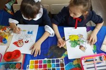 В день родного языка,учащиеся 1 класса приняли участие в выставке рисунков "По страницам литературных произведений".