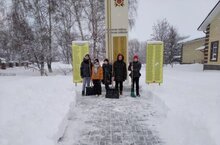 Учащиеся 6 класа расчистили снег на территории памятника участникам Великой Отечественной войны.