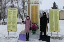 Учащиеся 7 класса из Первичного отделения Движения Первых и Юнармии приняли участие в акции «Снежный десант». Они расчистили снег на территории памятника войнам-землякам, запасной вход в школу.