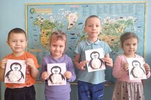 Воспитанники старшей группы выполнили объемную аппликацию «Веселые пингвины». Педагог провела подготовительную работу, в ходе которой рассказала ребятам об особенностях жизни животного мира Антарктиды. Обобщила знания детей о характерных особенностях внешнего вида обитателей Антарктиды – пингвинов. Воспитывать познавательный интерес к животному миру нашей планеты. Закрепила понятие о формах и геометрических фигурах.