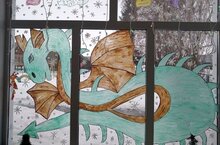 Ученики второго класса под руководством своего классного руководителя украсили свой класс к Новому году. Они нарисовали на окнах и украсили дверь символом года - Дракона. Теперь в классе царит праздничная атмосфера.