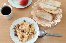 С целью проверки качества питания учащихся школьную столовую посетила мама учениц 3 и 6 классов. В столовой чисто, приятно пахнет. Чай сладкий, плов с говядиной рассыпчатый. Все в меру горячее. Блюдо вкусное, соответствуют меню Замечаний нет.