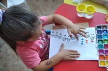 Дошкольники с удовольствием выполняют задание по познавательному развитию "Веселая гусеница".