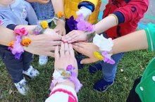 Дошкольники сделали себе украшения - браслеты. Эти браслеты одноразовые, они делаются из кусочков скотча, на липкую сторону которых наклеивается все природные материалы: цветочки, травинки, семена, листья…Каждый браслет получился ярким и оригинальным, неповторимым.