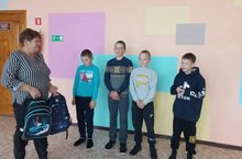 Благотворительная акция "Помоги собраться в школу", в рамках которой 4 ученика нашей школы получили новые портфели с канцтоварами. Детей и родителей поприветствовала глава Куркульского СП Бакеева Галина Николаевна.