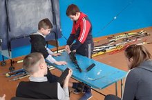 В рамках гражданско-патриотического месячника ребята знакомятся с автоматом.
