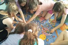 Ребята в пришкольном лагере играют в настольные игры