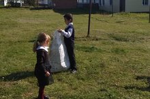 Учащиеся начальных классов убрали территорию спортивной площадки от мусора