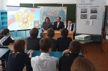Сегодня в нашей школе прошел Парламентский урок "Мы граждане России" . На урок были приглашены депутаты нашего села, Тюкарев Ю.И, Типясева Л.Л, Варламова С.А. Встреча прошла интересно, ребята оживленно вступали в беседу с депутатами, задавали интересующие их вопросы.