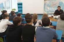 Участковый полиции Лямбин А.Н.провел с учащимися беседу на тему "Права и обязаности" и недопущении правонарушений среди учащихся.