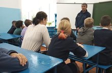 Открытый урок по основам безопасности жизнедеятельности провел учитель ОБЖ. Ребятам напомнил об алгоритме действий в случае чрезвычайных ситуаций. Была проведена беседа с элементами практических занятий.