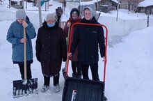 В рамках военно-патриотического месячника ,отряд юнармейцев помогли пожилым людям в очистке территории от снега