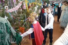 В нашей школе прошло новогоднее представление с участием Деда Мороза,. Снегурочки и конечно со "сказочной нечестью". Все ребята дружно спасали Снегурочку из рук Бабы Яги.