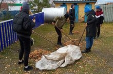 Сегодня все работники и учащиеся школы вышли на уборку пришкольной территории.