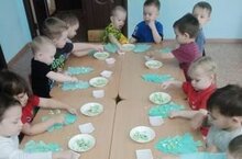 Дети младшей группы выполняли аппликацию в нетрадиционной технике из бумажных салфеток.
