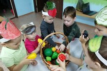 С детьми младшей группы была проведена игра "Веселый огород". Дети называли овощи, описывали их цвет, форму, величину.