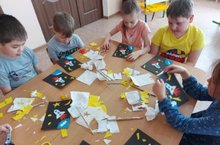Цель: закреплять умение создавать сюжетную картинку в аппликации. Учить передавать форму ракеты, закреплять знания о Луне, планетах, космосе.