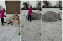 Сотрудники детского сада приняли участие в постройке снежных фигур около Центральной елки в селе Лебяжье.